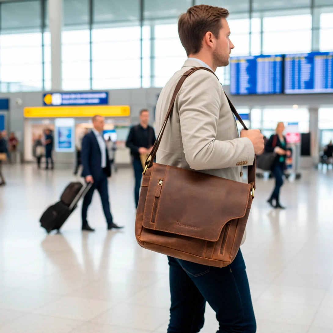 Men’s Läder Axelremsväska – Brun Nubuckläder